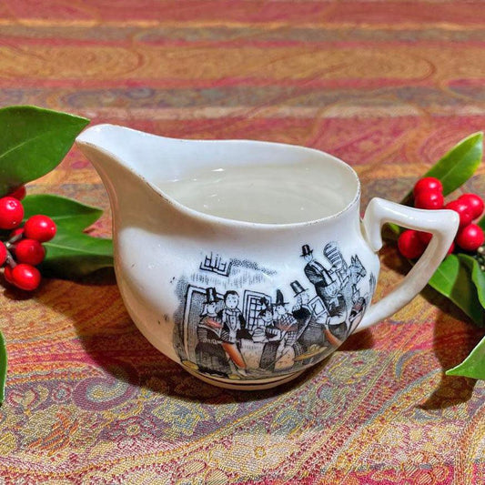 Milk Jug / Creamer - Welsh Costumes Market - Antique Victorian Souvenir (Preloved)