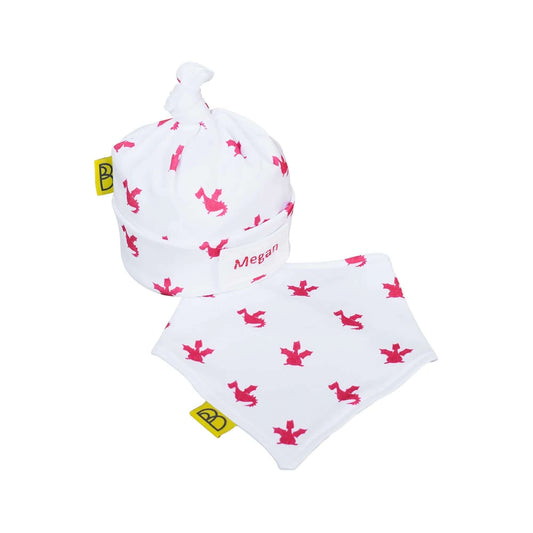 Baby Gift Set - Organic Cotton - Hat & Dribble Bib – Red Dragon - Personalised - Handmade