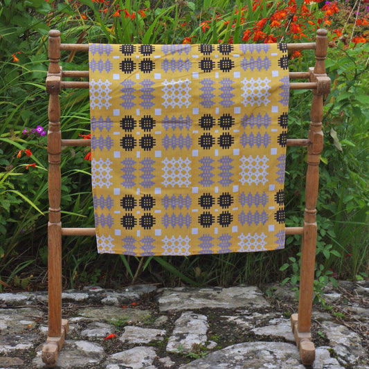 Tea Towel - Welsh Tapestry Print - Mustard Yellow