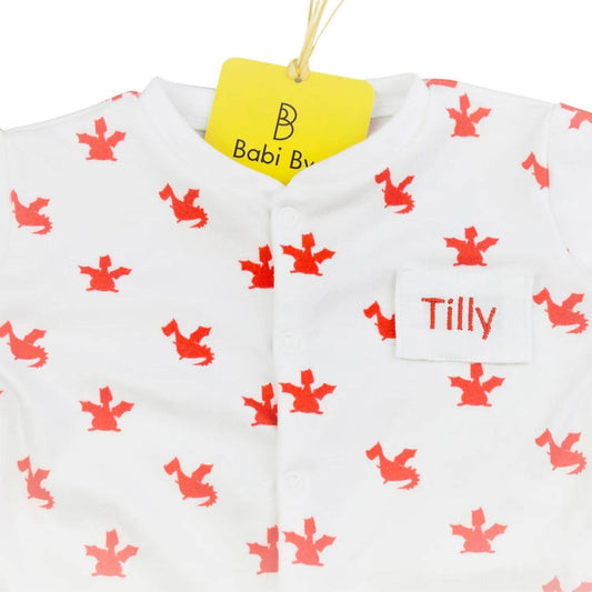 Baby Sleepsuit - Organic Cotton – Red Dragons - Personalised - Handmade