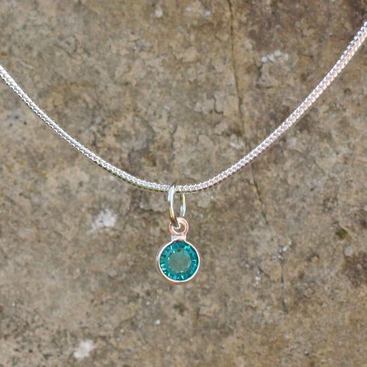 Birthstone Crystal Pendant - Silver Necklace - Welsh Language - December / Blue Zircon