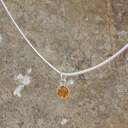 Birthstone Crystal Pendant - Silver Necklace - Welsh Language - November / Topaz
