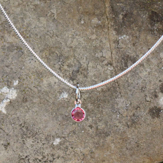 Birthstone Crystal Pendant - Silver Necklace - Welsh Language - October / Rose