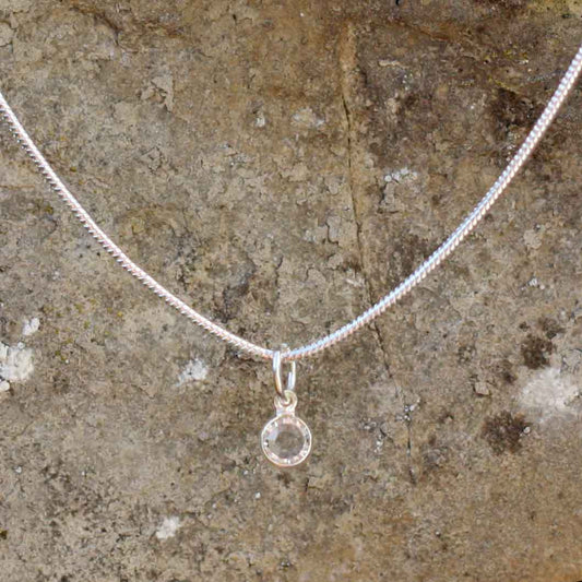Birthstone Crystal Pendant - Silver Necklace - Welsh Language - April / Diamond