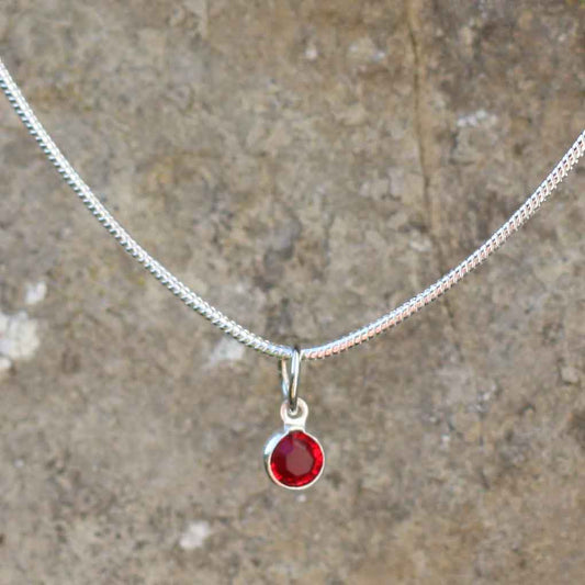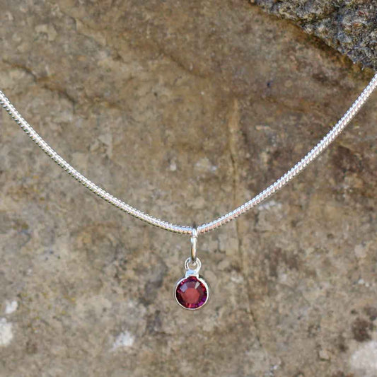 Birthstone Crystal Pendant - Silver Necklace - Welsh Language - January / Garnet
