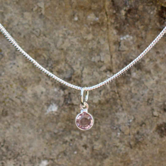 Birthstone Crystal Pendant - Silver Necklace - Welsh Language - June / Light Amethyst