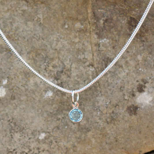 Birthstone Crystal Pendant - Silver Necklace - Welsh Language - March / Aquamarine