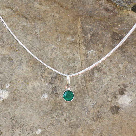 Birthstone Crystal Pendant - Silver Necklace - Welsh Language - May / Emerald
