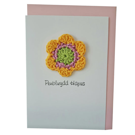 Card - Handmade Crochet - Penblwydd Hapus - Happy Birthday
