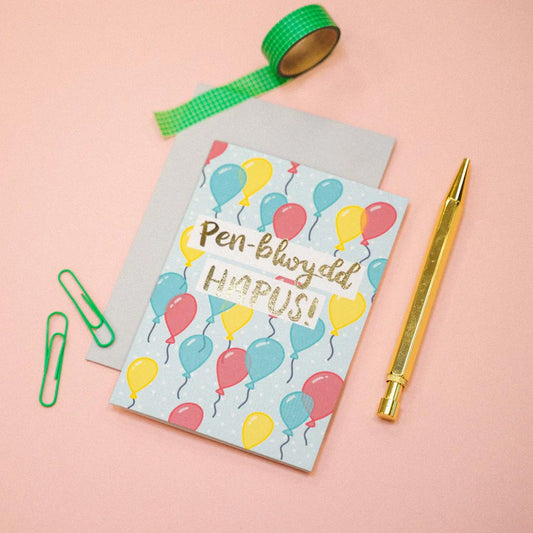 Greeting Card - Foiled - Pen-blwydd Hapus / Happy Birthday - Balloons