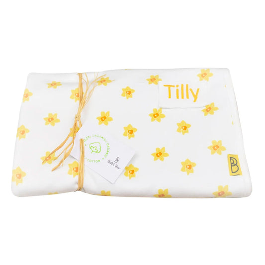 Baby Blanket - Organic Cotton – Daffodils - Personalised - Handmade