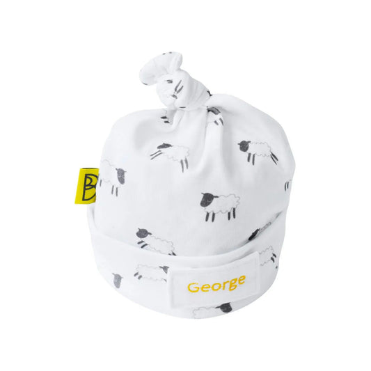Baby Gift Set - Organic Hat Dribble Bib – Welsh Lambs - Personalised - Handmade