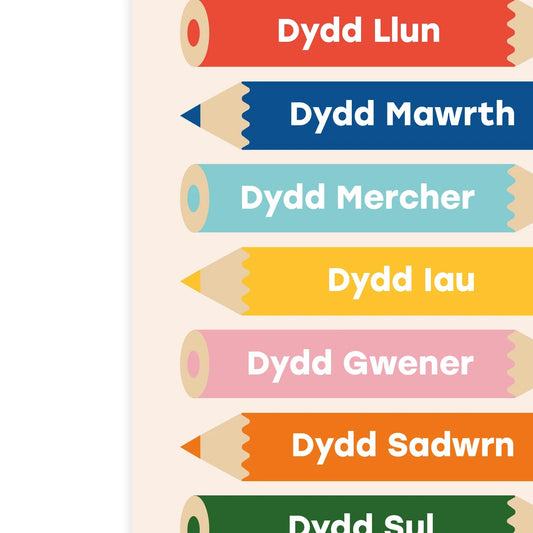 Art Print - Kid's Educational - Pencils - Dyddiau'r Wythnos / Welsh Days of the Week - A4