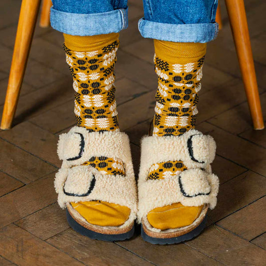 Socks - Mabli Carthen / Welsh Tapestry - Adults Unisex - Gold