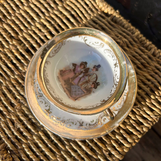 Little Cup & Saucer - Welsh Costumes - Welsh Spinning Party - Antique Souvenir (Preloved)