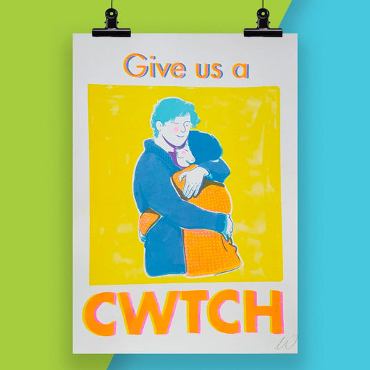 Art Print - Risograph - Give us a Cwtch / Cuddle - A3