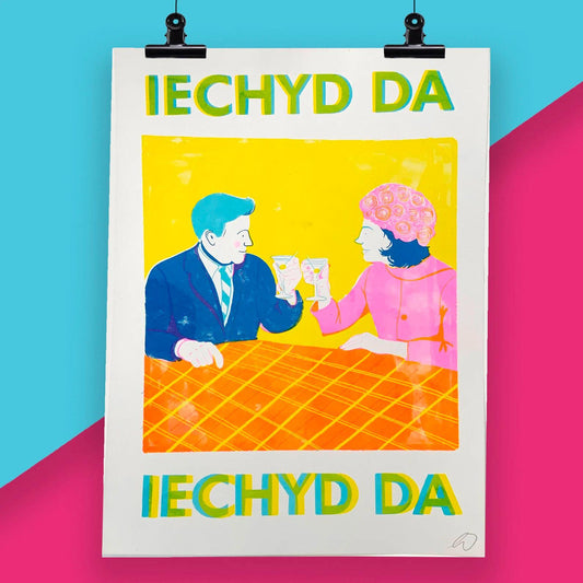Art Print - Risograph - Iechyd Da / Cheers / Good Health - A3