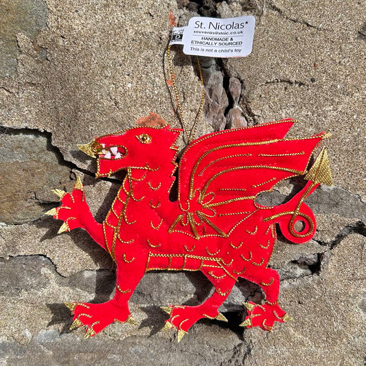 Christmas Decoration - Handmade - Embroidered Welsh Dragon (imperfect)