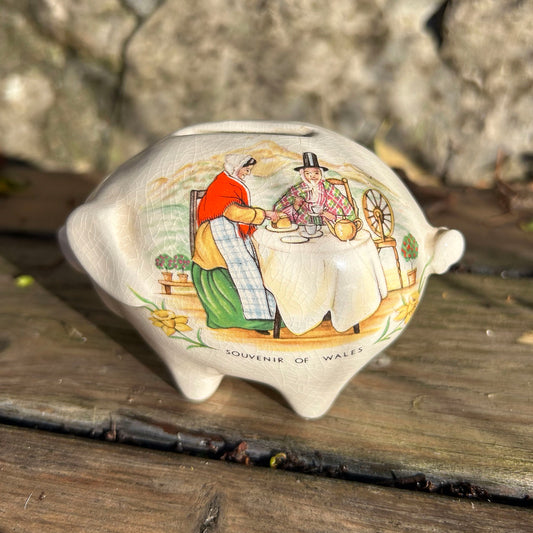 Piggy Bank - Welsh Ladies - Souvenir of Wales - Antique (Preloved)