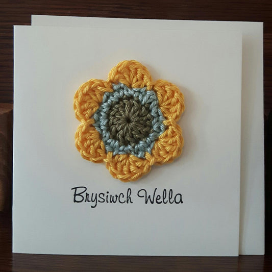 Cerdyn - Crosio â Llaw - Brysiwch Wella - Gwella'n Fuan