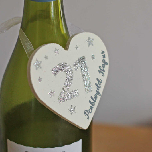 Tag Rhodd / Addurno Calon - Penblwydd Hapus / Happy Birthday - Age