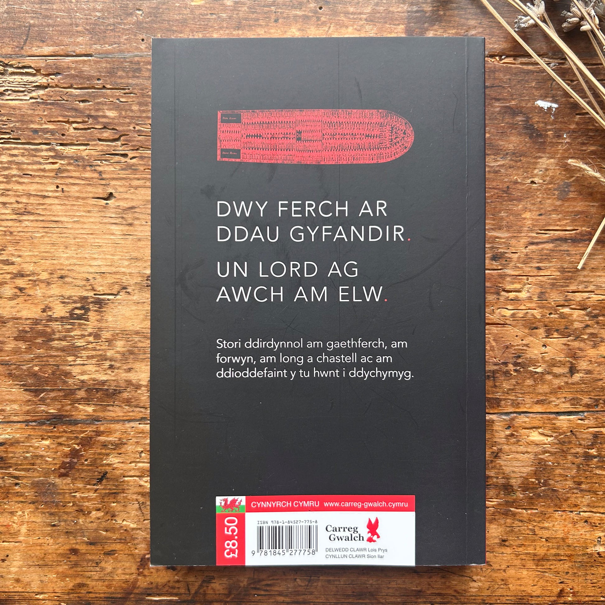• Clawr caled gyda byrddau glas 136 tudalen