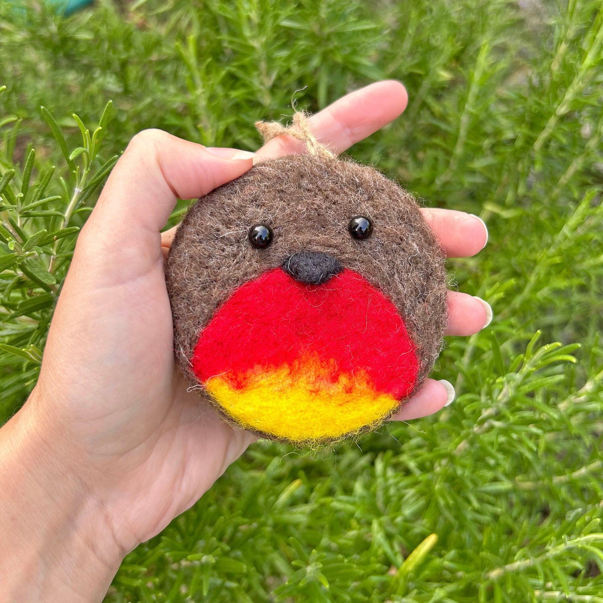- Robin ffelt nodwydd giwt wedi'i wneud o 100% gwlân wedi'i gardio