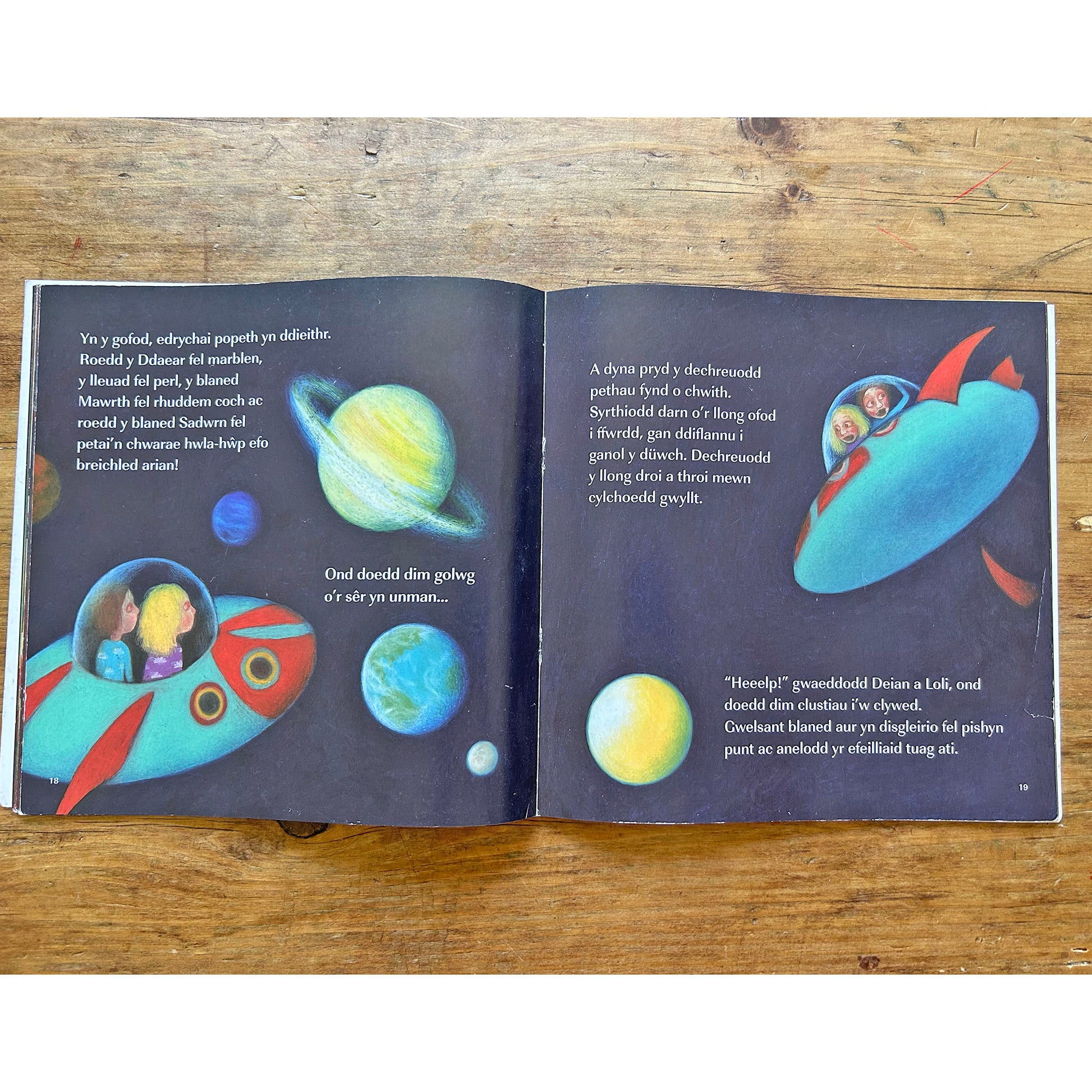 Dydy Deian a Loli ddim eisiau mynd i gysgu ac maen nhw'n mynd i chwilio am fwyd yn y gegin. Wrth iddyn nhw edrych drwy'r ffenestr, maen nhw'n sylwi nad oes seren yn yr awyr. Maen nhw'n teithio mewn llong ofod i geisio darganfod y sêr. Ar y blaned euraidd maen nhw'n cwrdd â Madam Zera sy'n gwybod popeth am sêr.