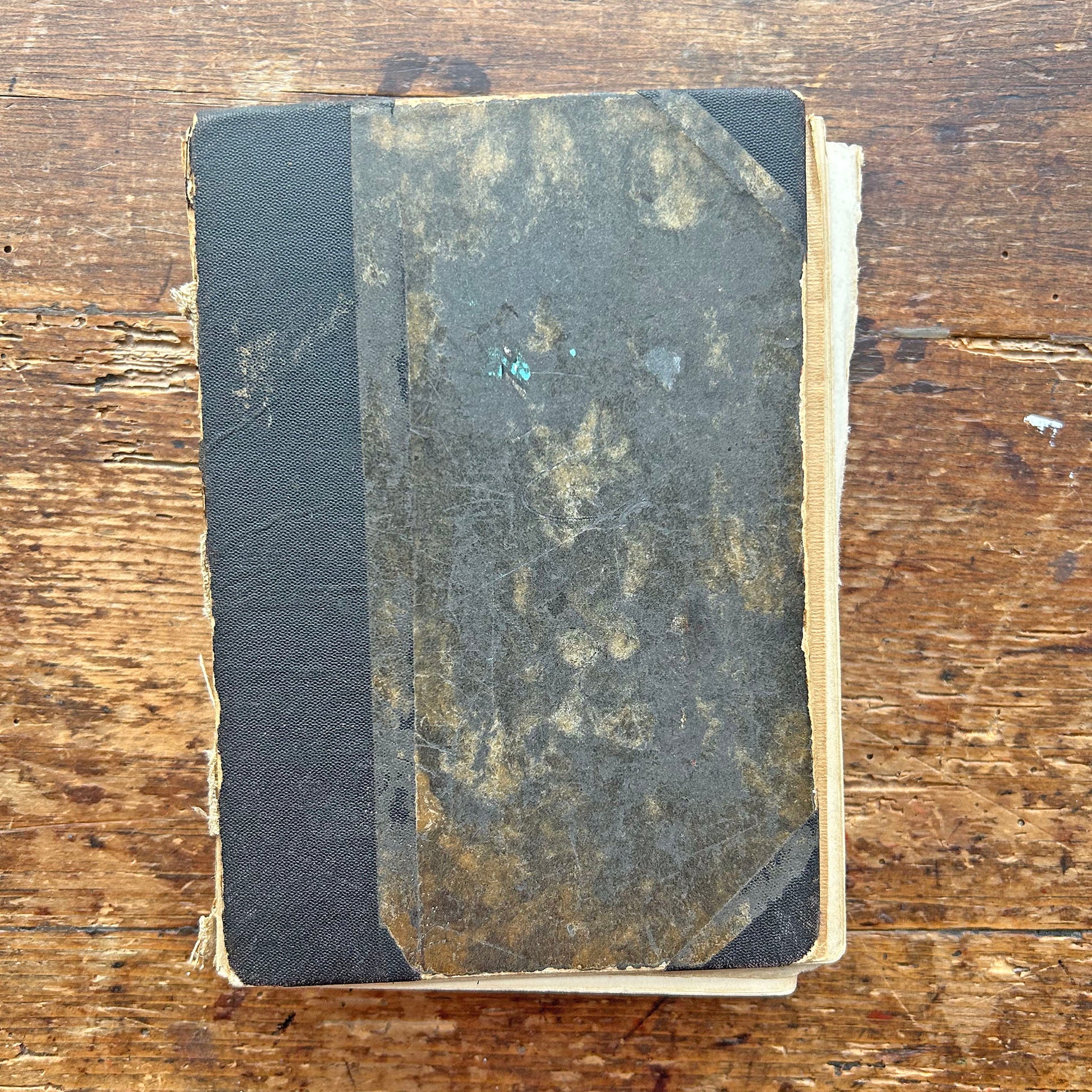 - Hardback with black / dark grey boards, missing spine, 340 pages