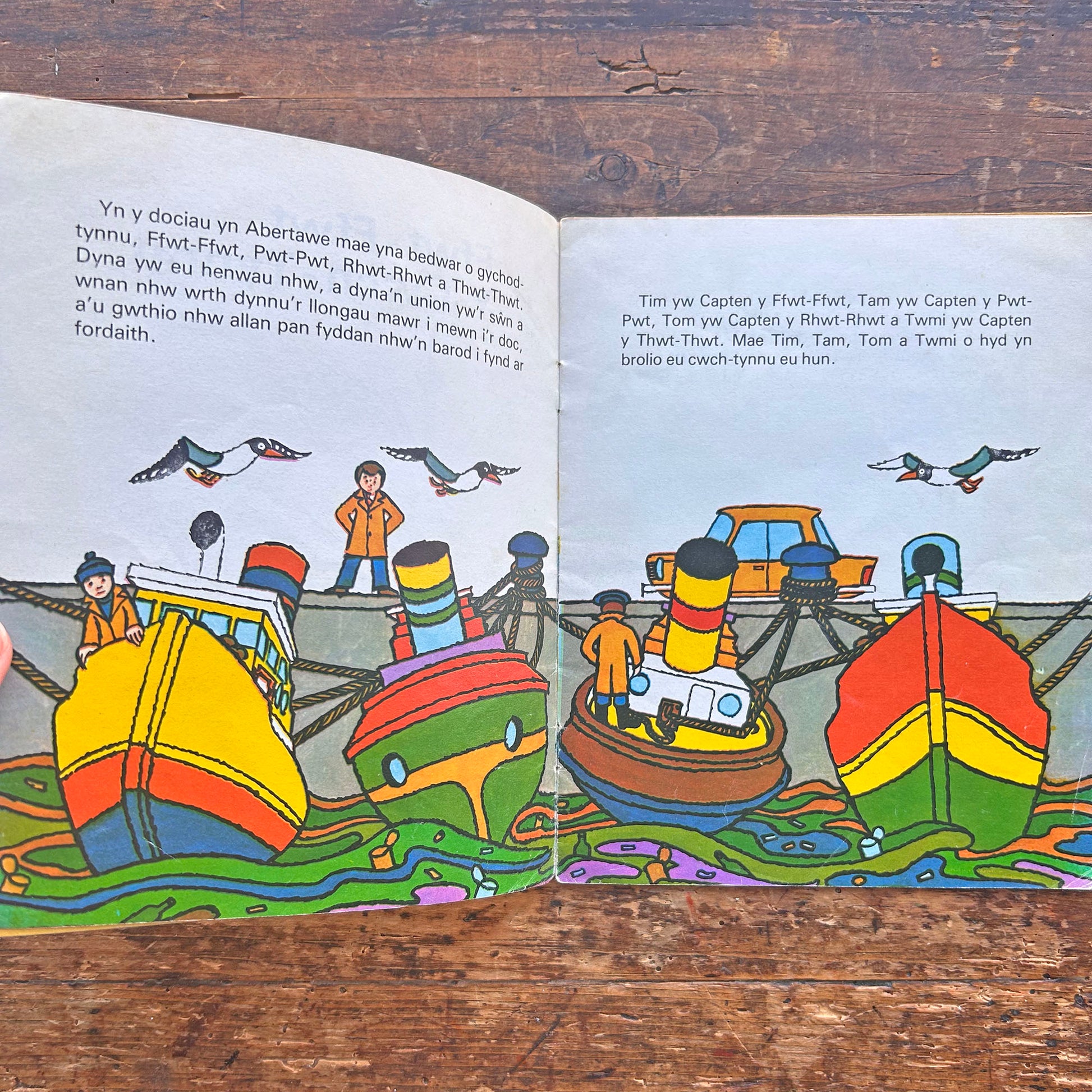 A rare and beautiful vintage picture book by Aneurin Jenkins-Jones about boats in Swansea. Part of Cyfres Sgwrs a Stori (1). Beautifully illustrated by Philippe Degrave.