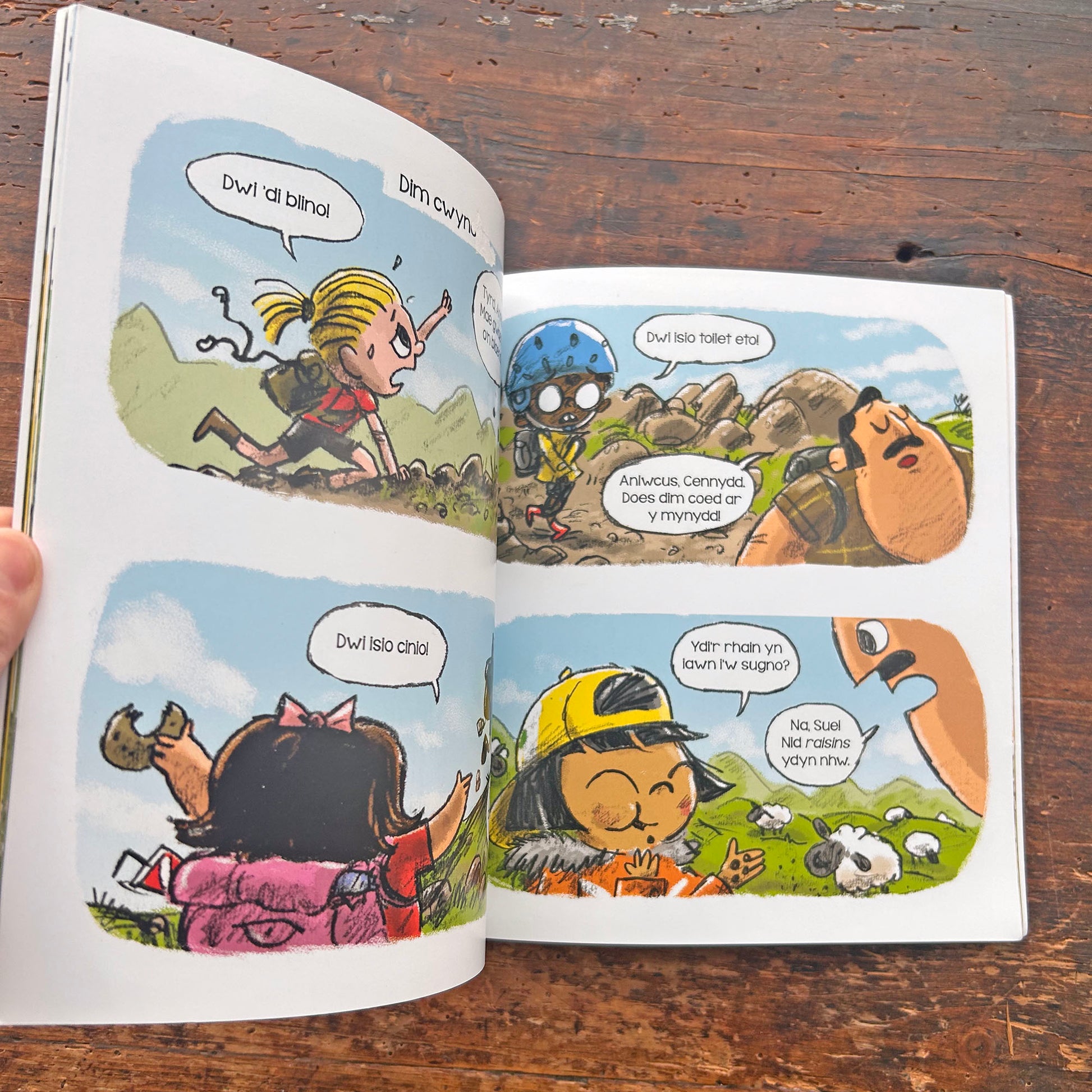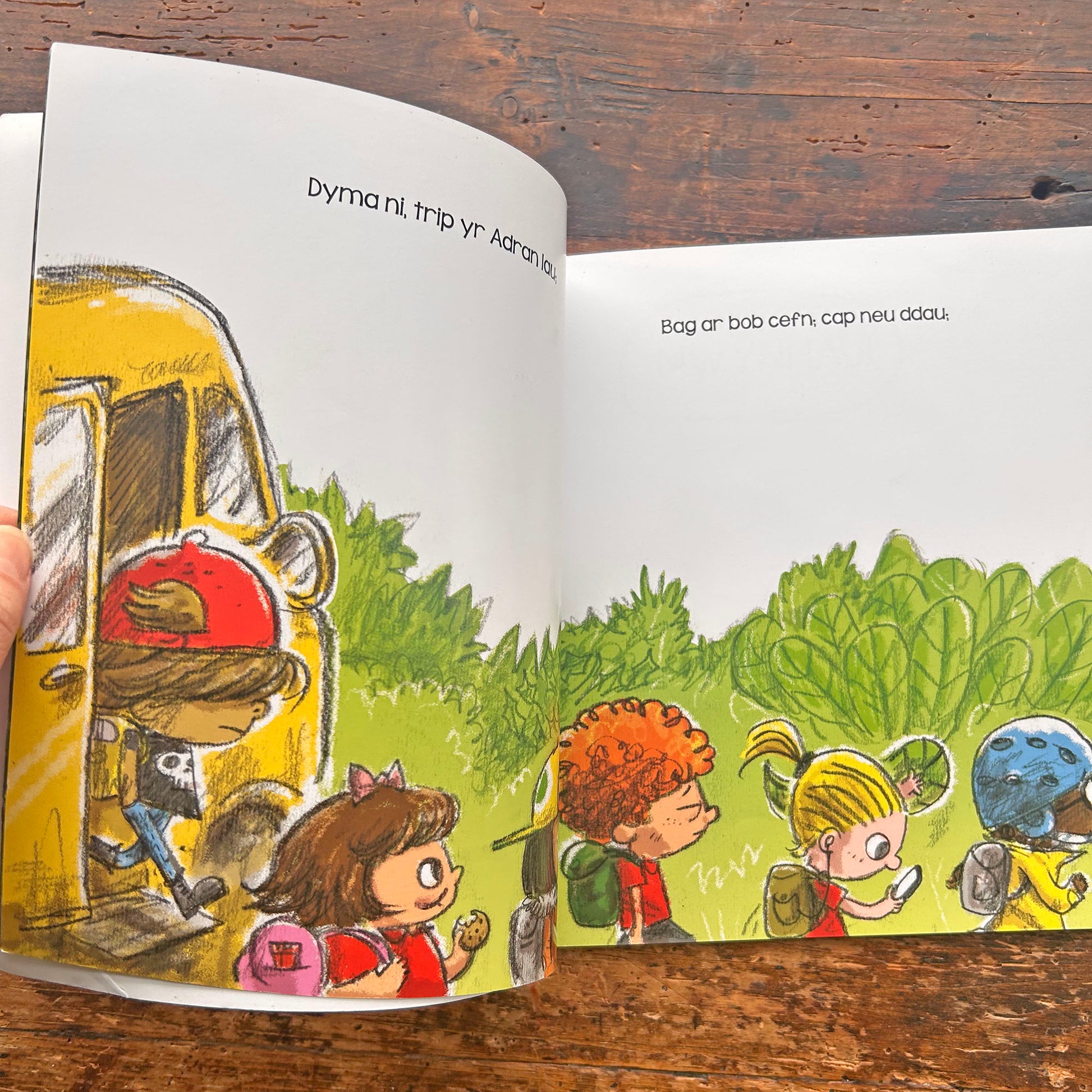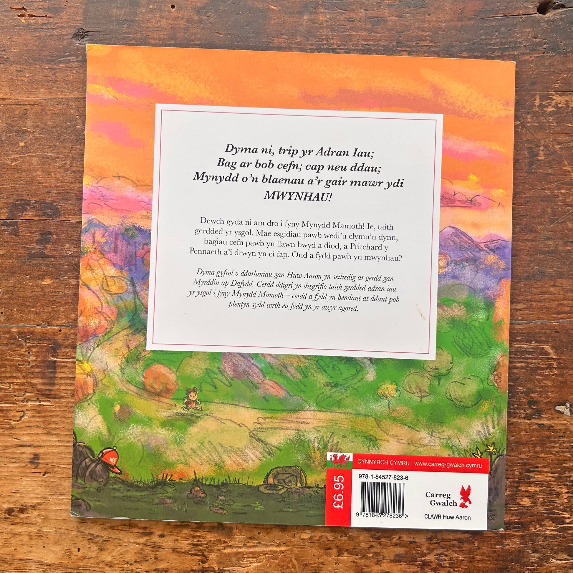 A volume of illustrations by Huw Aaron based on a humorous poem by Myrddin ap Dafydd describing Class Two's walk up a mountain called Mynydd Mamoth. But will the children enjoy their walk?