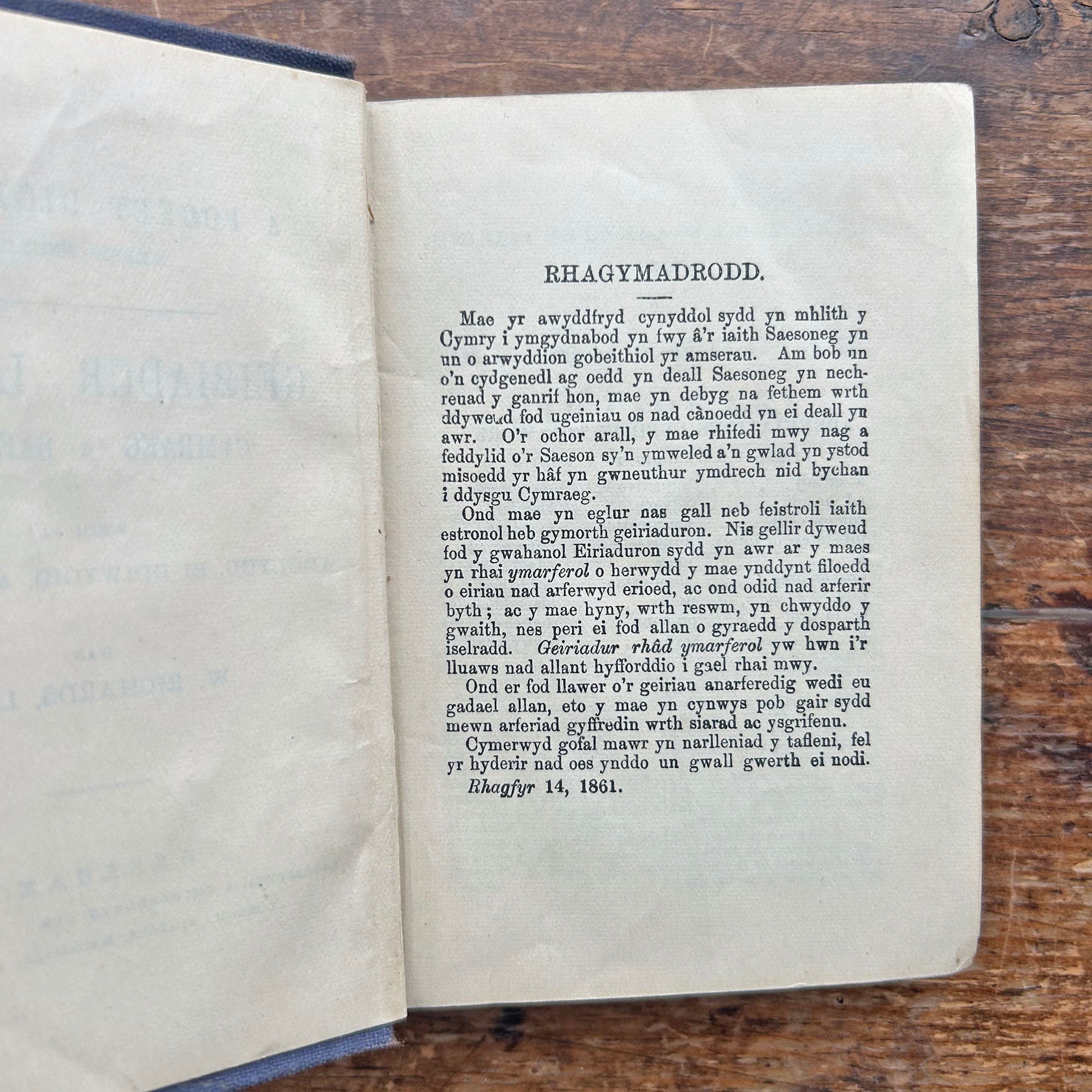Mae'r cyflwyniad (Yn y Gymraeg) yn ddiddorol gan ei fod yn credu mewn gwelliant yn y berthynas rhwng Cymru a Lloegr. Nododd yr awdur fod yr awydd cynyddol ymhlith y Cymry i ymgysylltu â'r iaith Saesneg yn cael ei ystyried yn ddatblygiad addawol yn y cyfnod!
