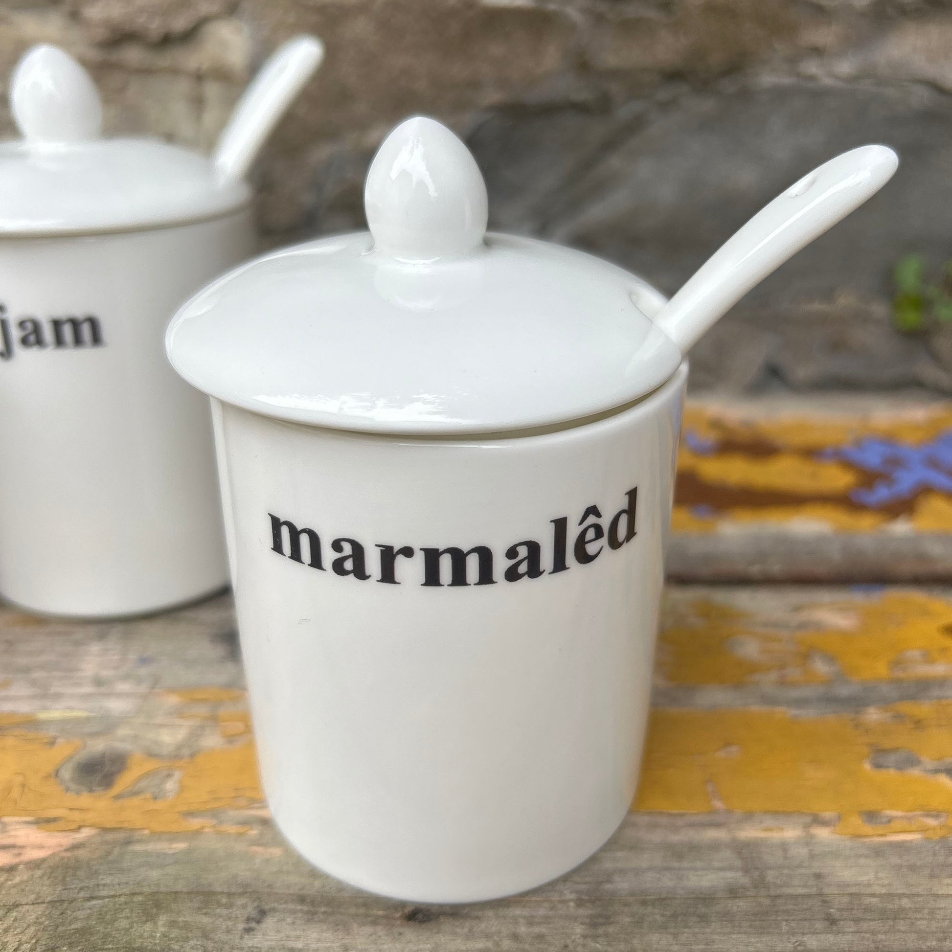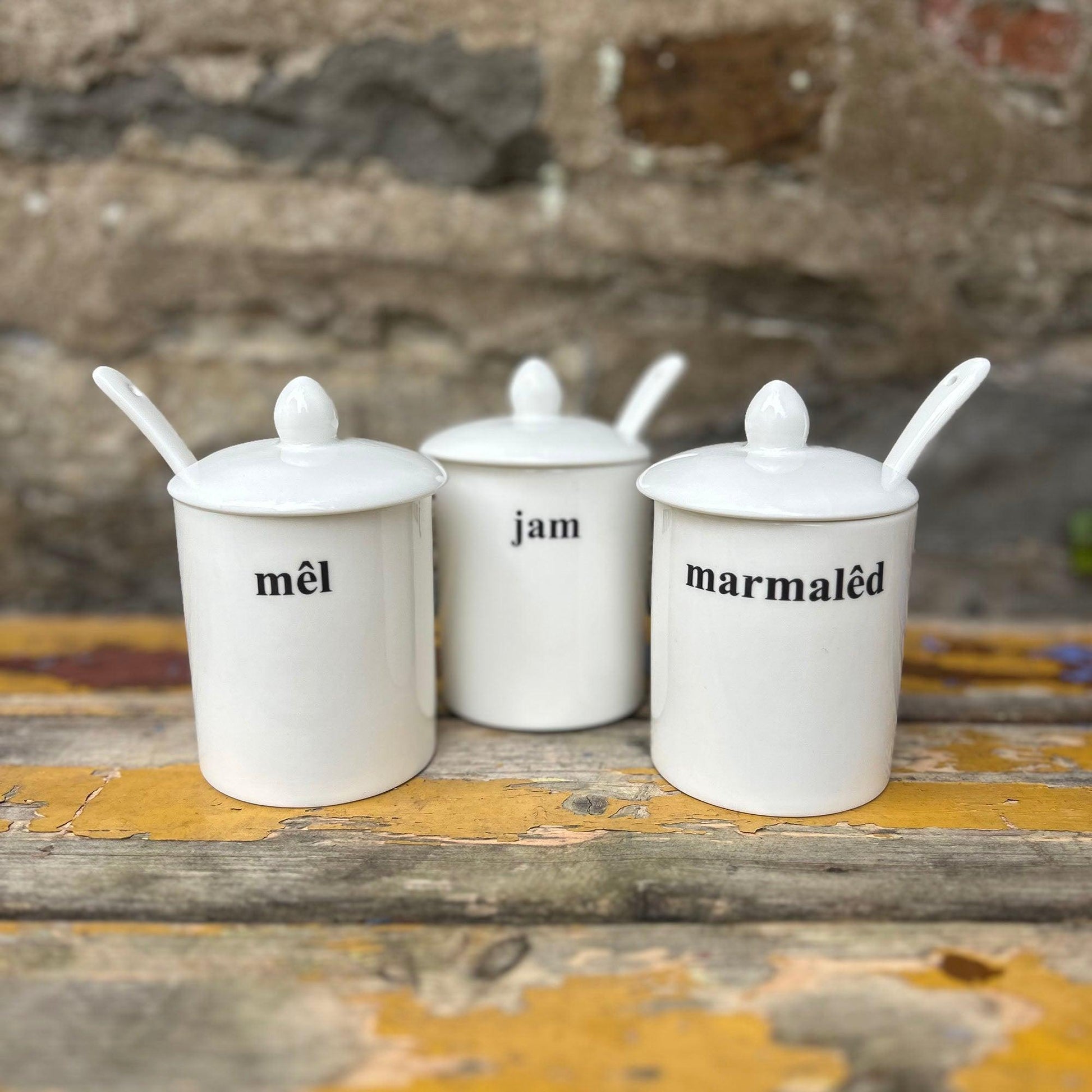 - Mêl, jam a marmalêd yw'r gair Cymraeg am, ie, fe wnaethoch chi ddyfalu'n gywir, mêl, jam a marmaled!
