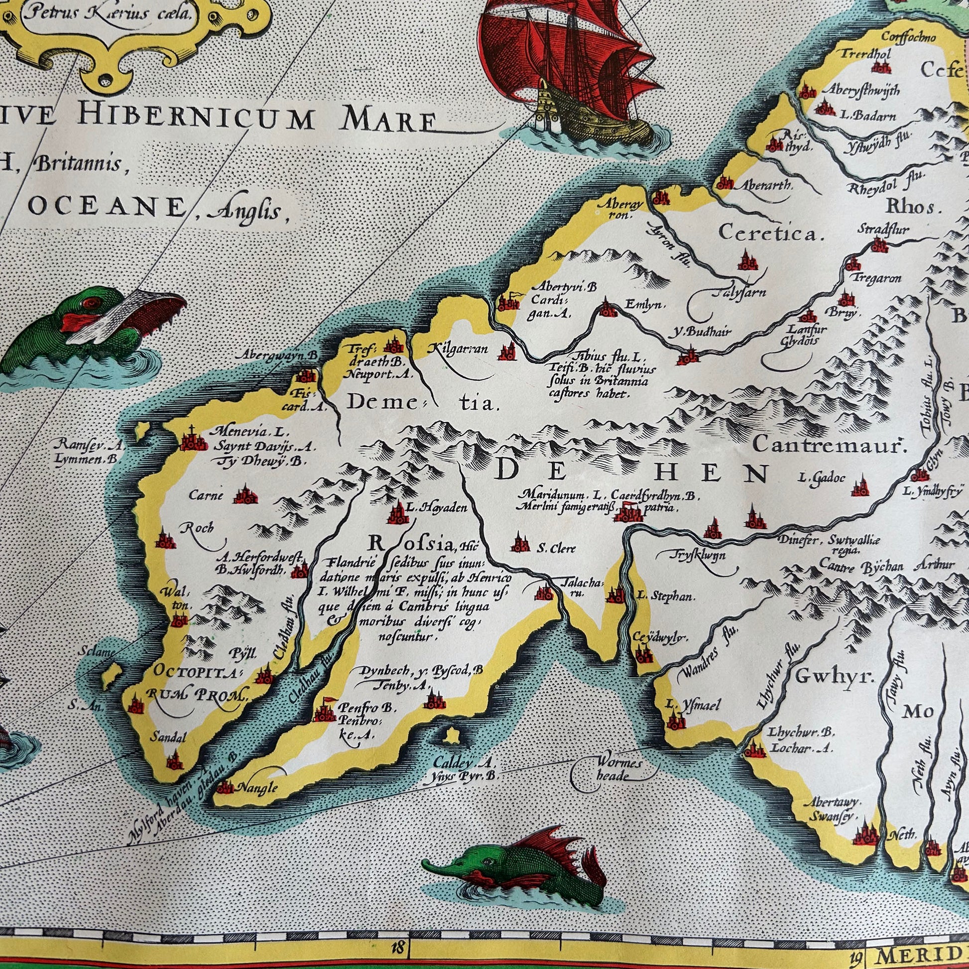 A beautiful poster print of one of the earliest maps of Cymru / Wales from the Latin Mercator's Atlas of 1611. It is titled 'Cambriae Typus' which is the Latin for Cymru.
