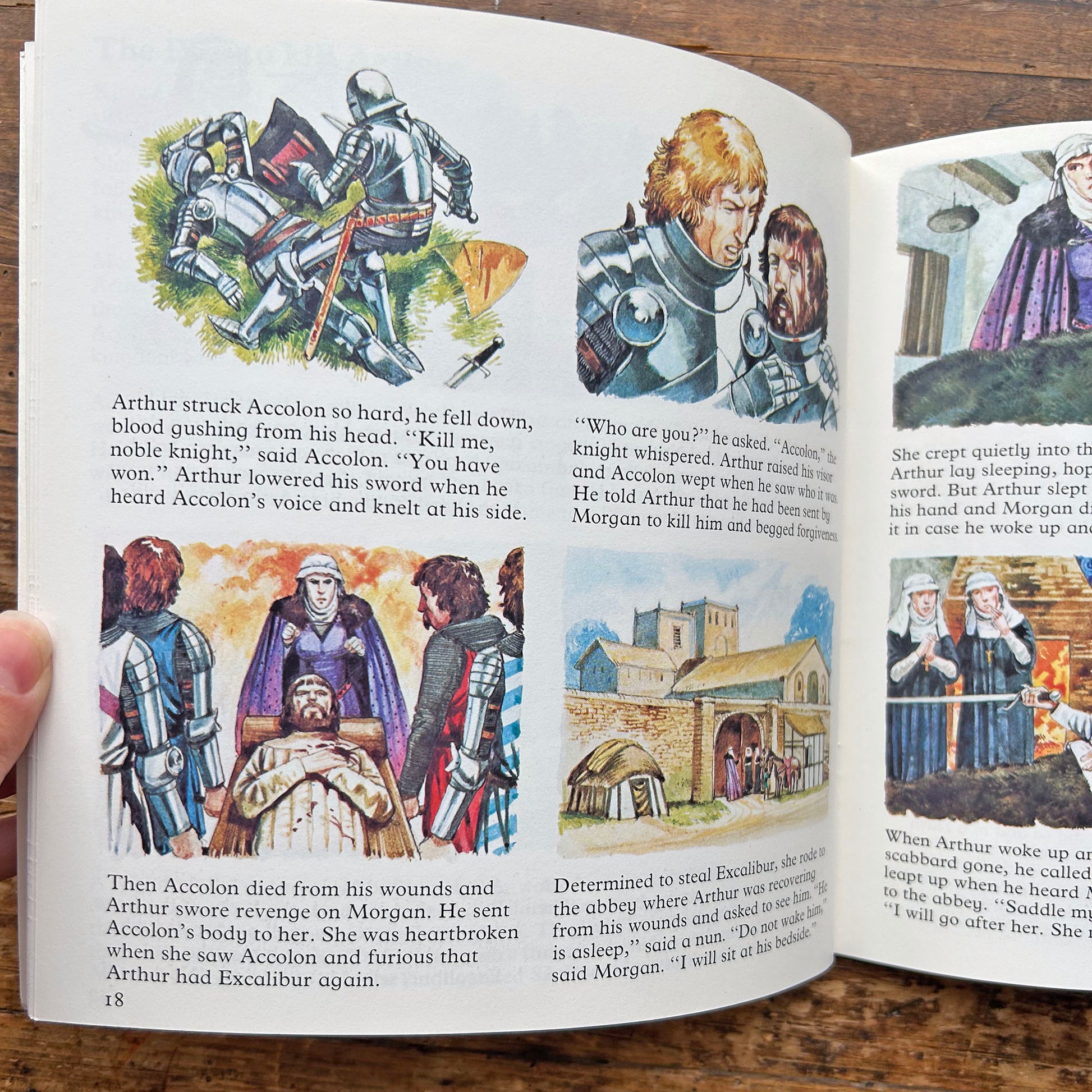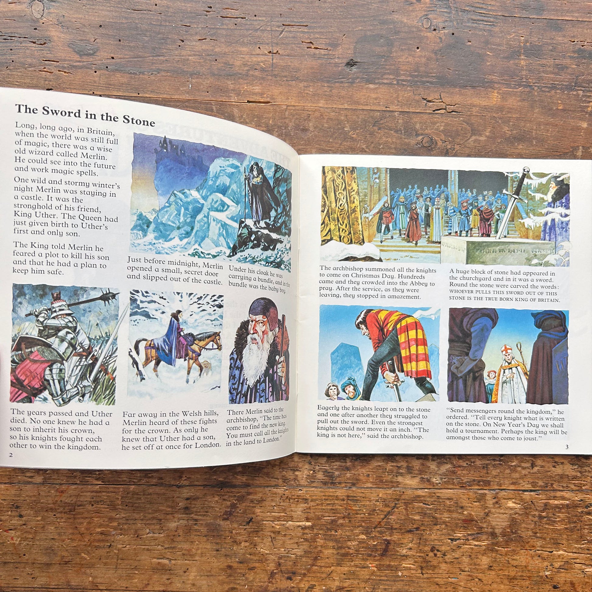 Llyfr wedi'i ddarlunio'n hyfryd sy'n adrodd hanes y Brenin Arthur gan Angela Wilkes (Awdur) a Peter Dennis (Darlunydd)
