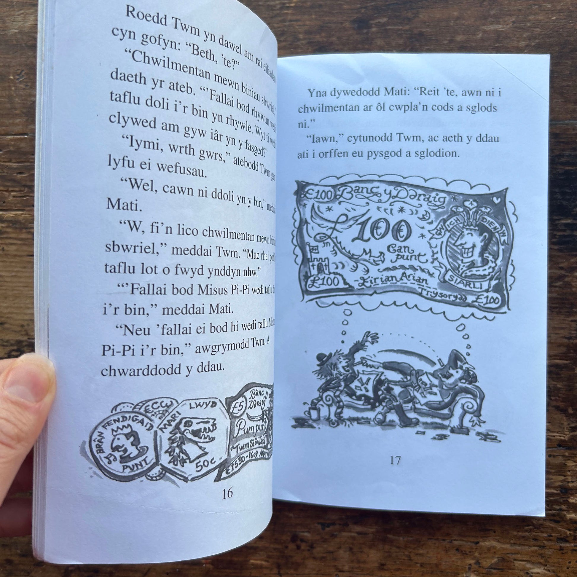 A very funny illustrated story about the crazy troubles of the posh and messy residents of the village of Pant-y-pwca, as they compete for the best, with incredible results for a prize of one hundred pounds; for readers aged 7-9.