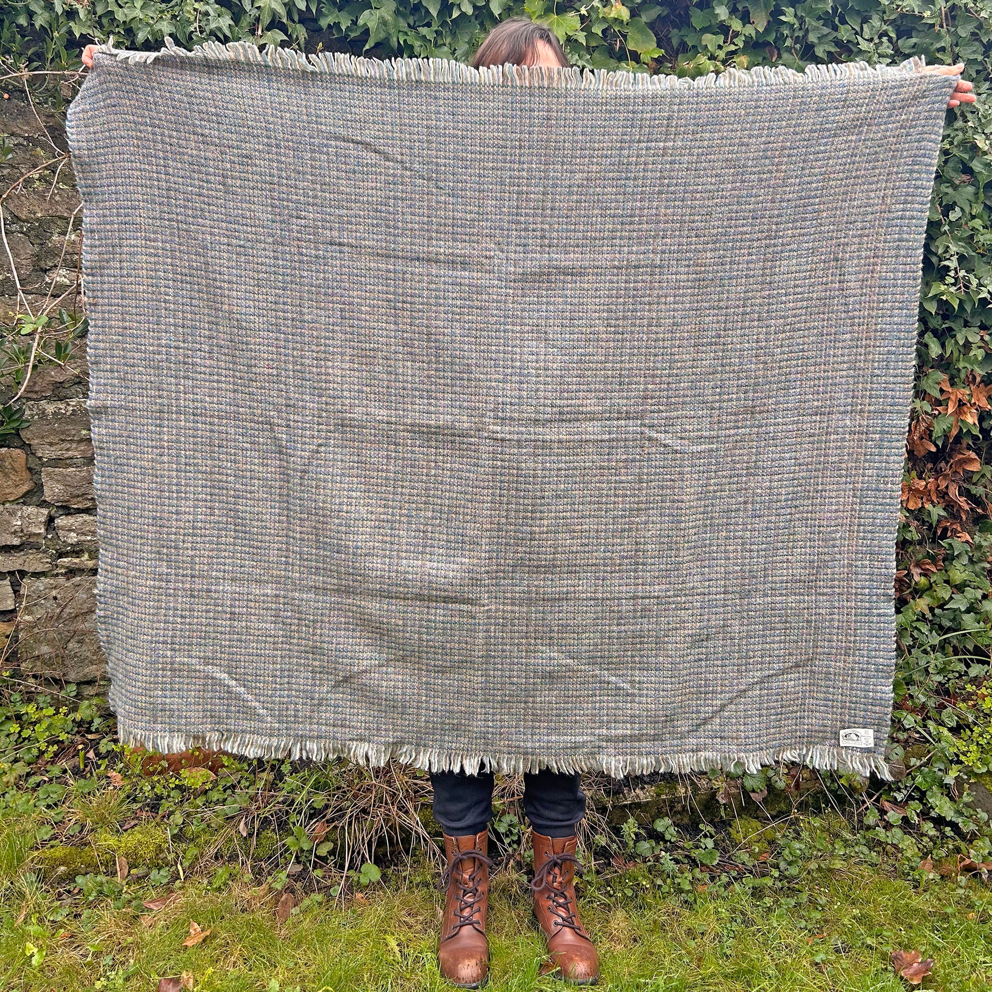 Vintage Welsh Throw / Blanket - 100% Wool - Blues (Preloved)