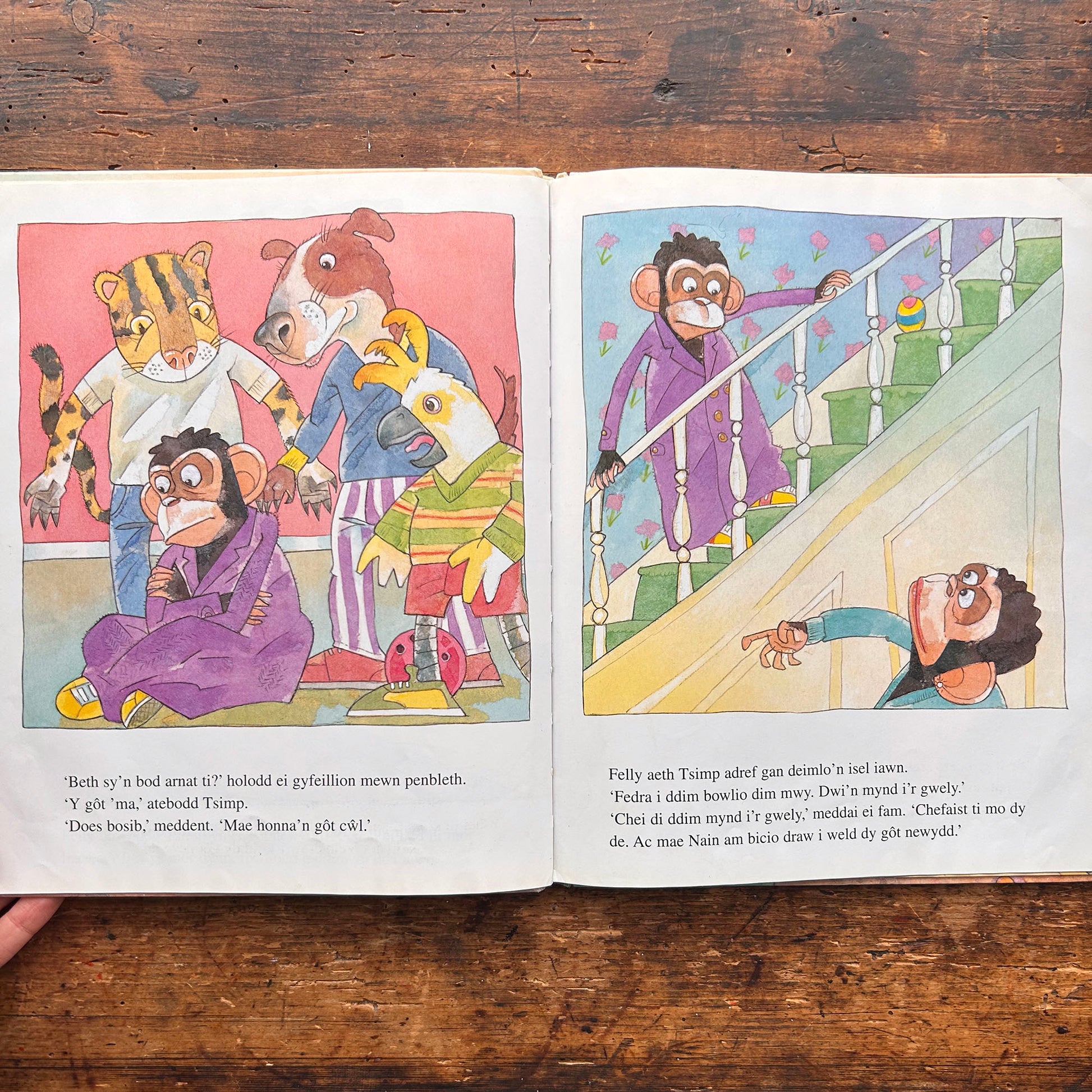 A Welsh adaptation of The Wrong Overcoat by Hiawyn Oram and illustarted by Mark Birchall. Translated by Dylan Williams.