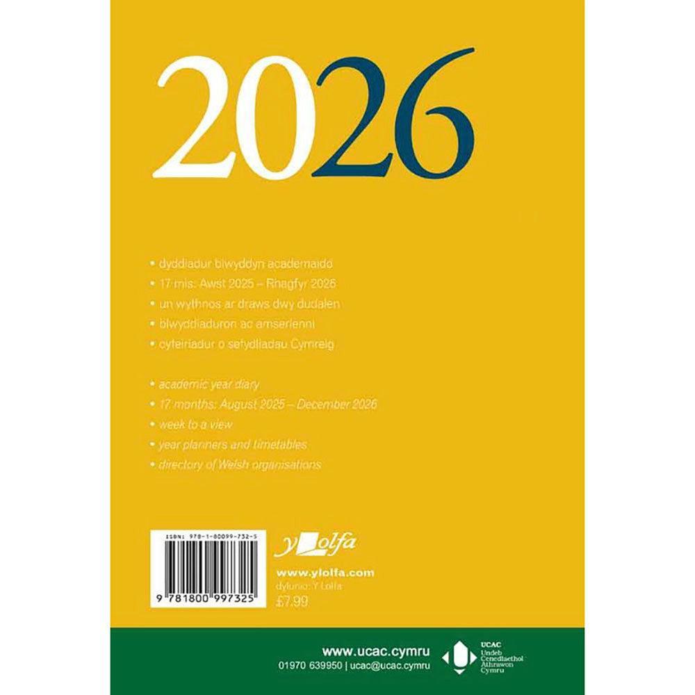 A Welsh academic diary for the year 2025-2026 in a trendy butter yellow.