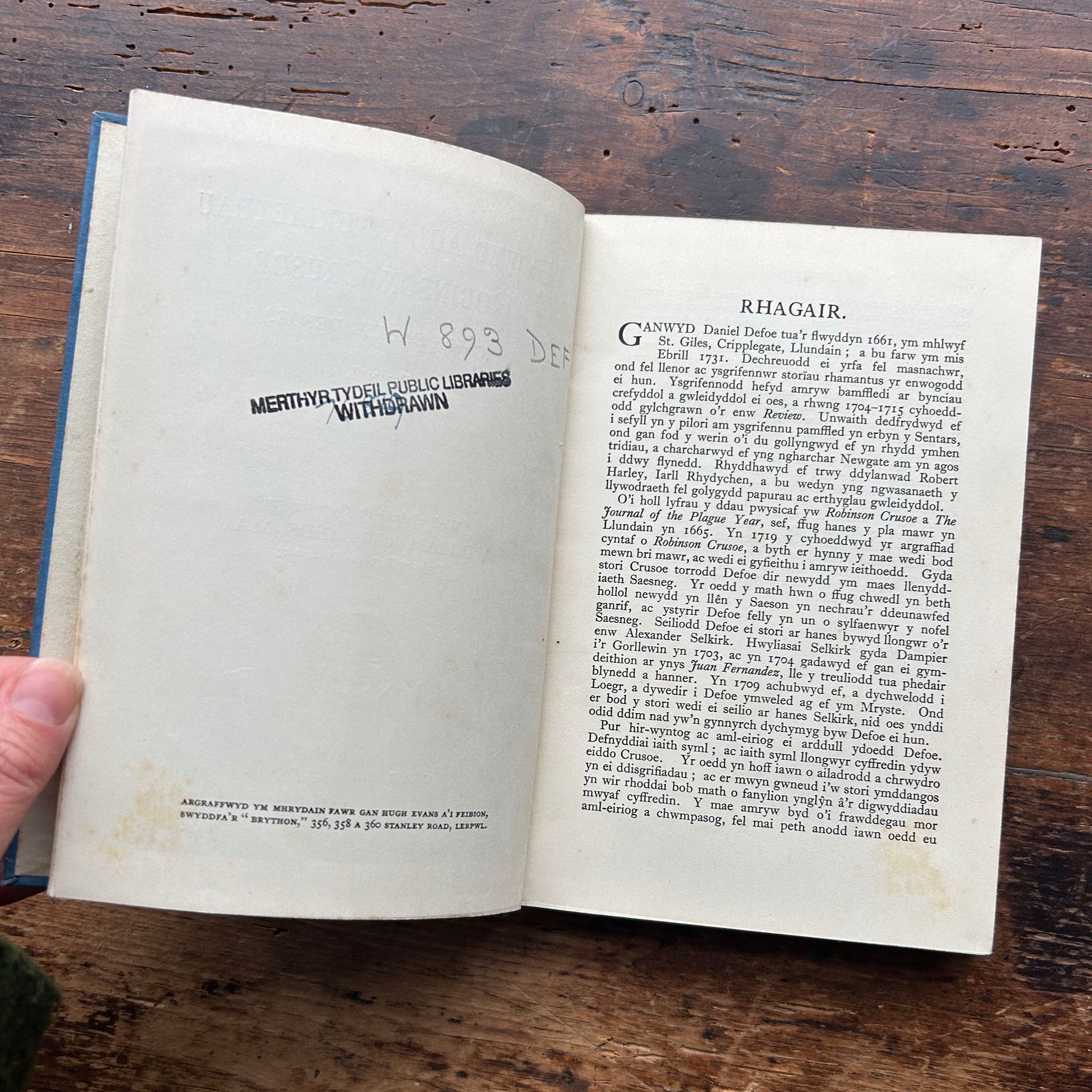 The Welsh-language version of Daniel Defoe’s Life and Adventures of Robinson Crusoe, translated by William Rowlands (of Porthmadog)