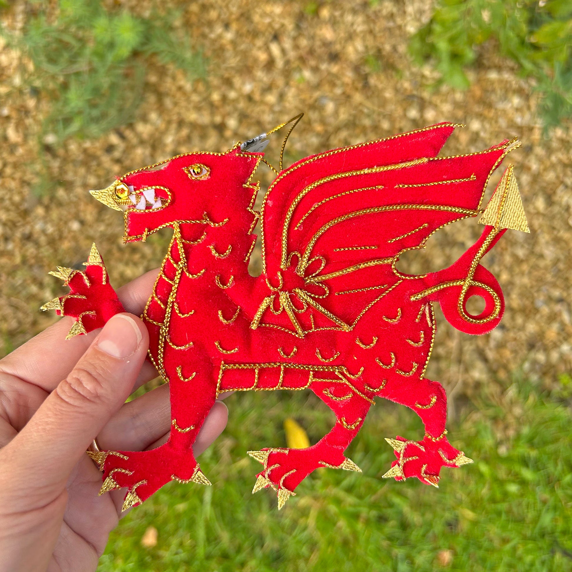 Christmas Decoration - Handmade - Embroidered Welsh Dragon (imperfect)