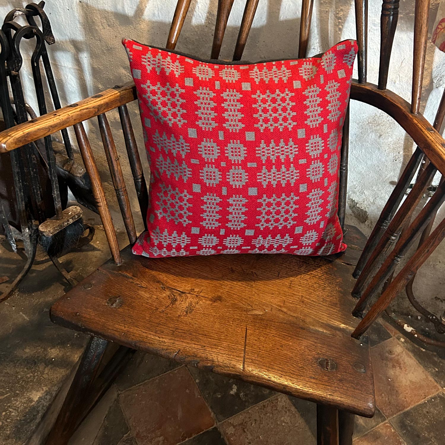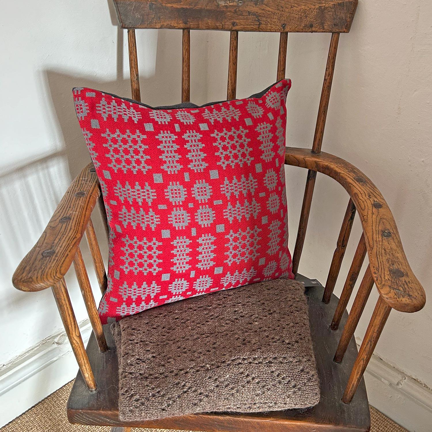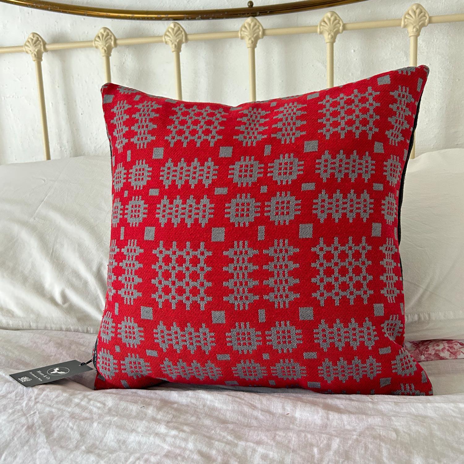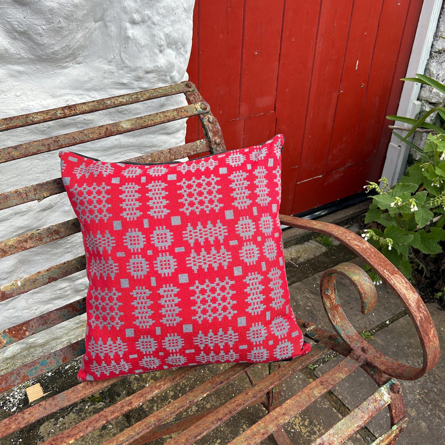 Cushion Cover - Welsh Tapestry Woven - Red & Grey