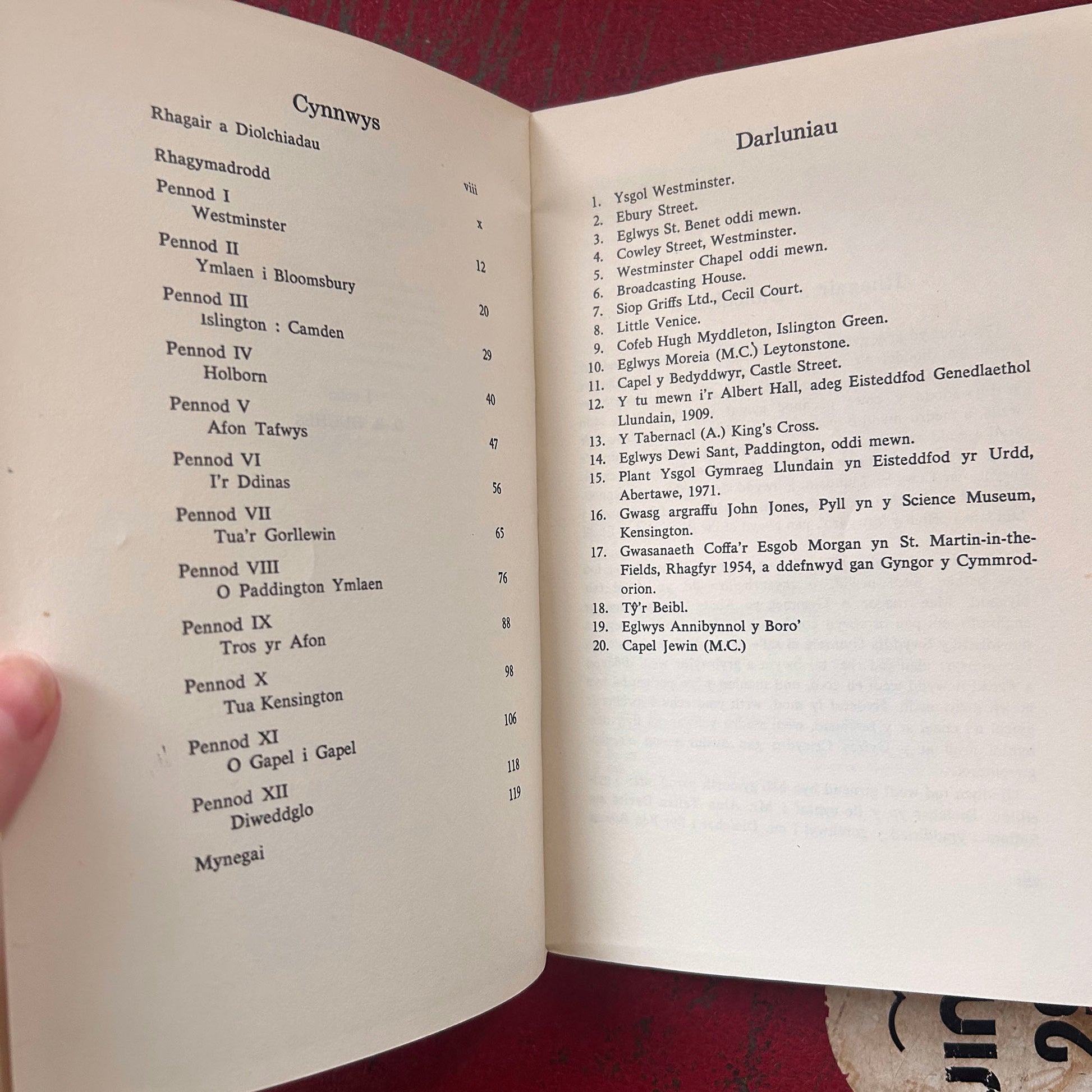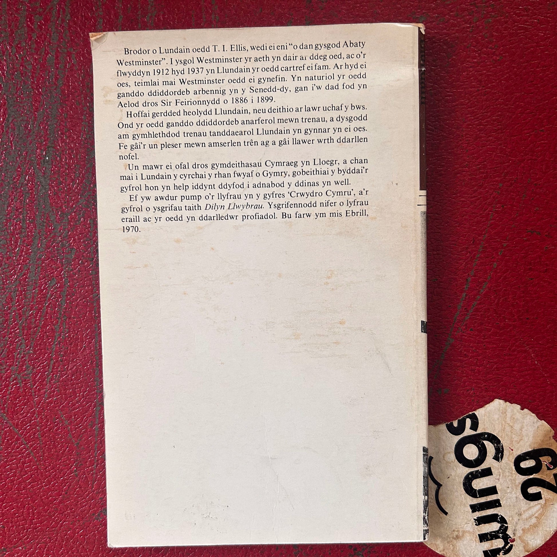 A classic Welsh travel book by Thomas Iorwerth (T.I.) Ellis, first published in 1971, offering a Welsh perspective on London, part of his popular "Cyfres crwydro Cymru" series.