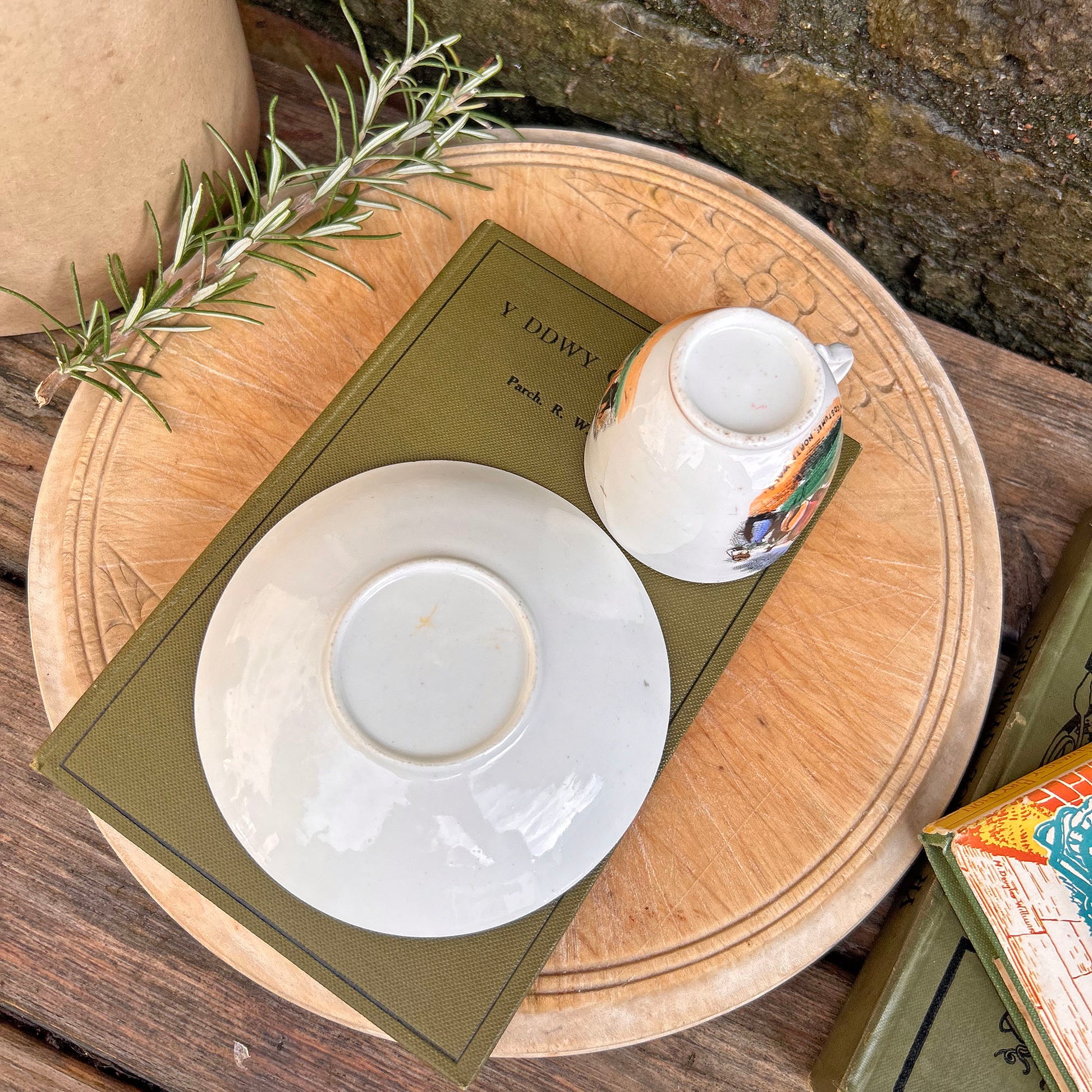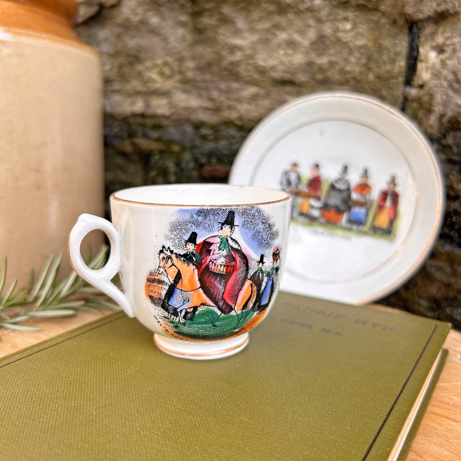 - The cup says "Welsh Costumes. North Wales", the saucer "Welsh Costumes"