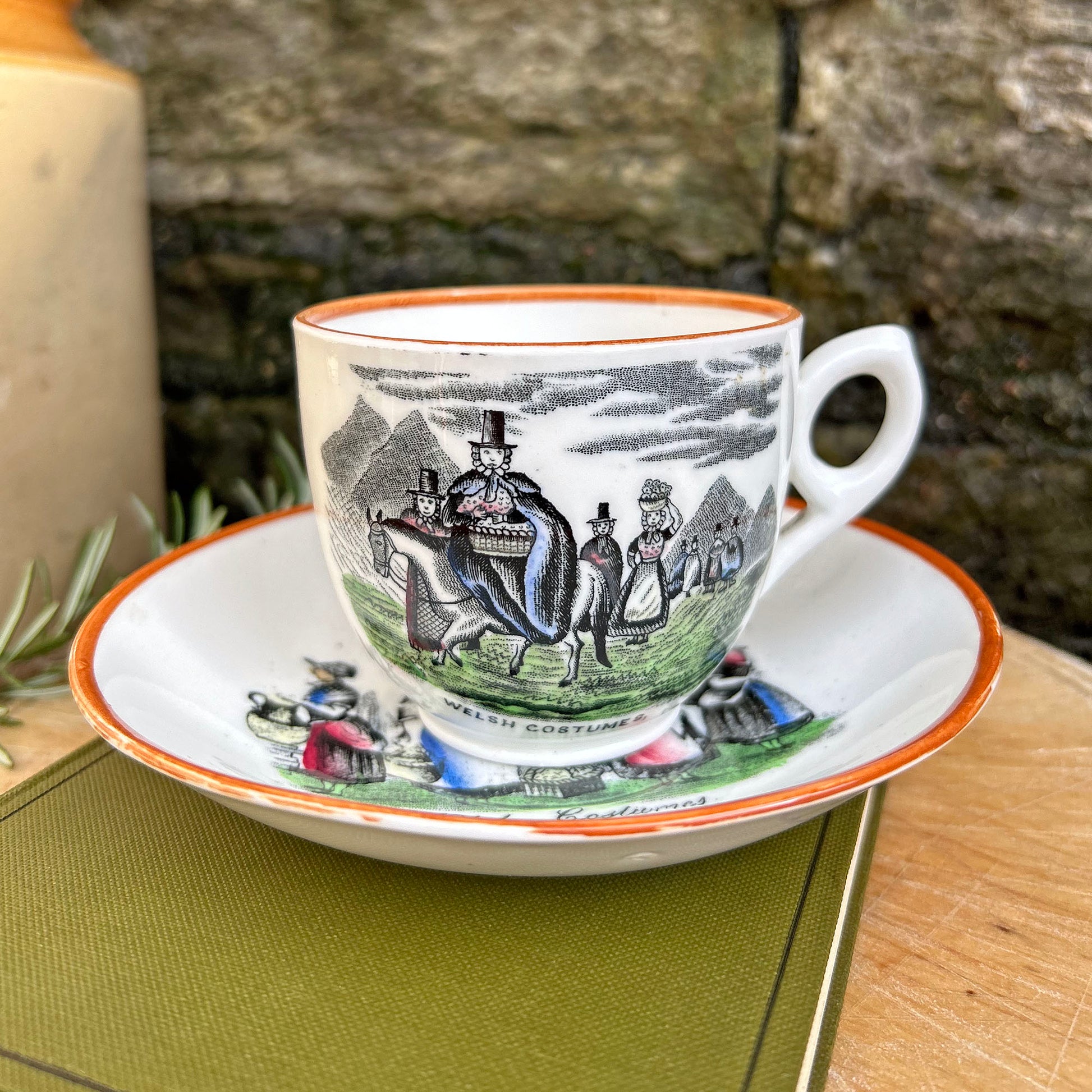 Stunning 'Welsh Costumes' cup and saucer