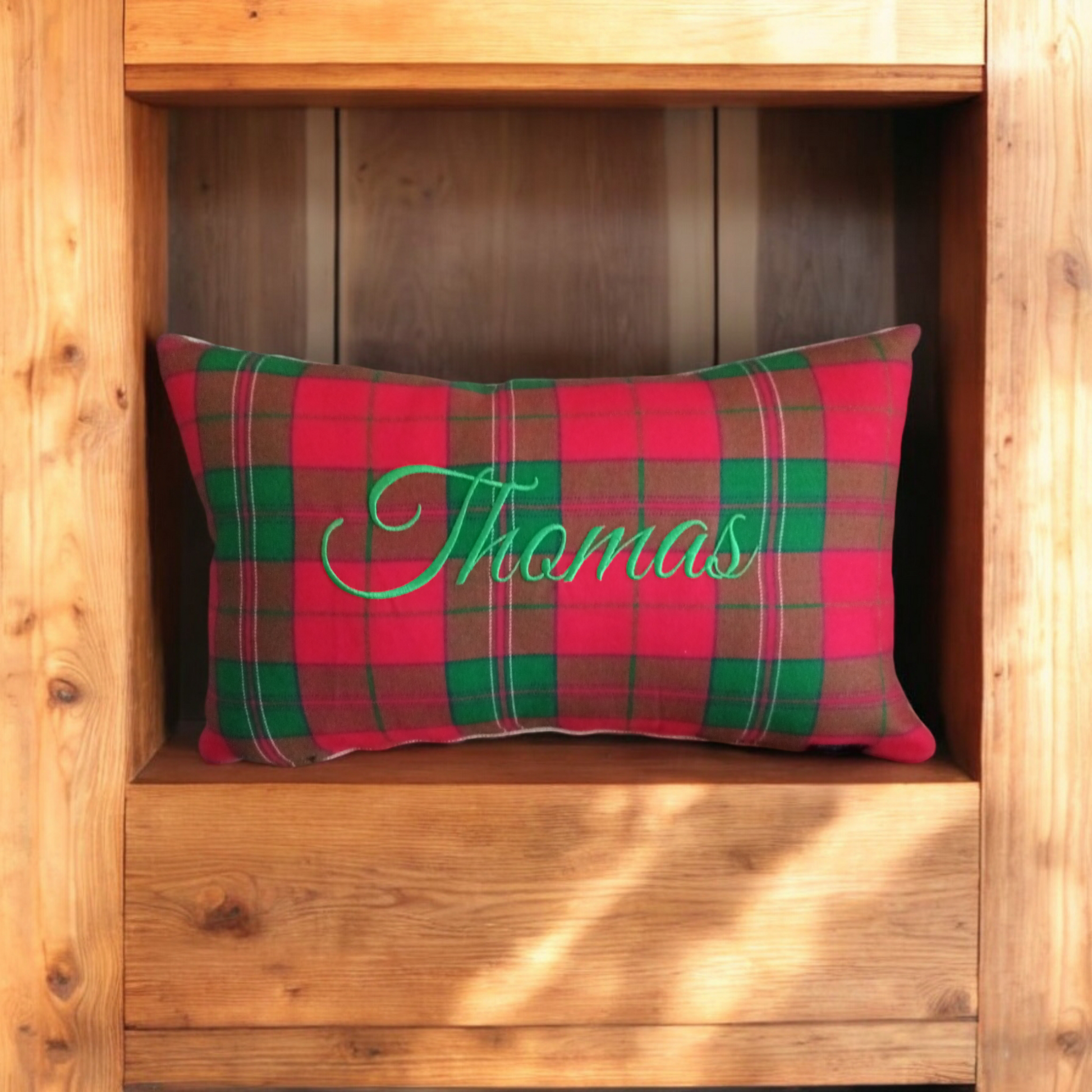 Cushion - Welsh Clan Tartan Wool - Your Surname - Personalised - Oblong (Embroidered)