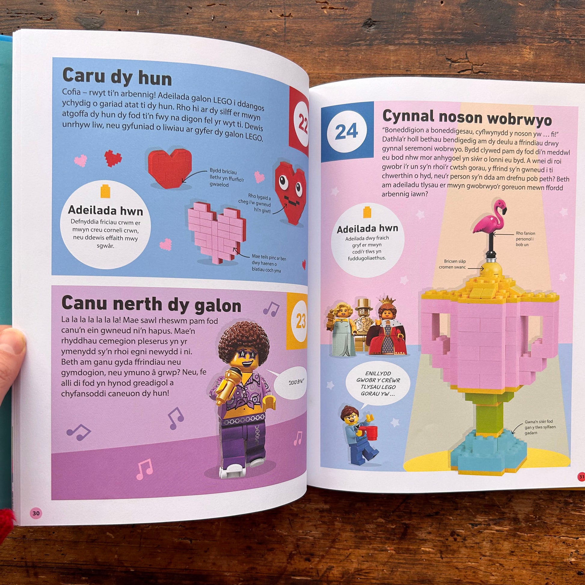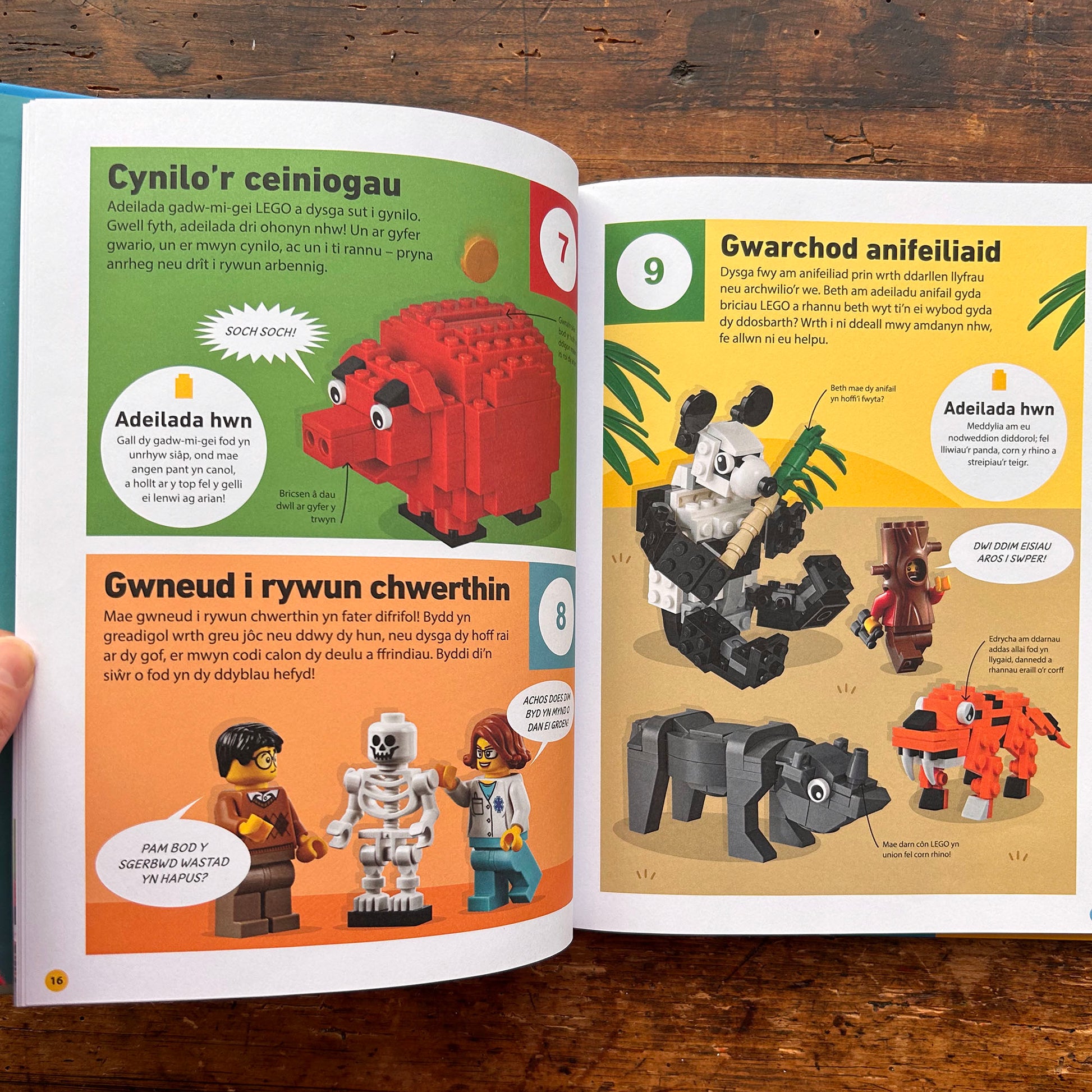 This is the Welsh edition of LEGO 100 Ways to Rebuild the World: Get Inspired to Make the World an Awesome Place! It contains 100 fun ideas to be kind and spread joy using LEGO bricks.