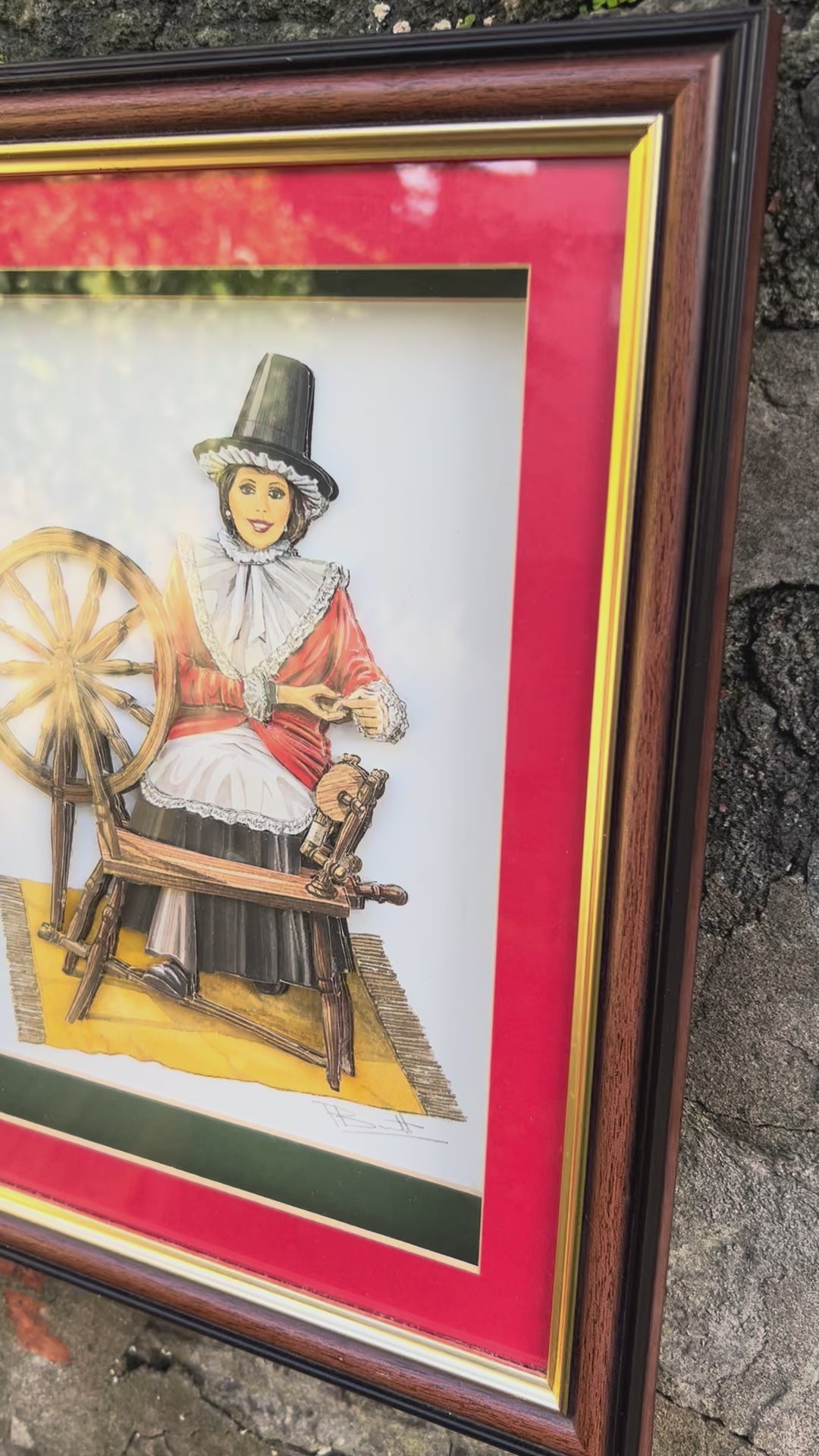 Framed 3D Print / Shadow Box - Welsh Lady Spinning Wheel (Preloved)