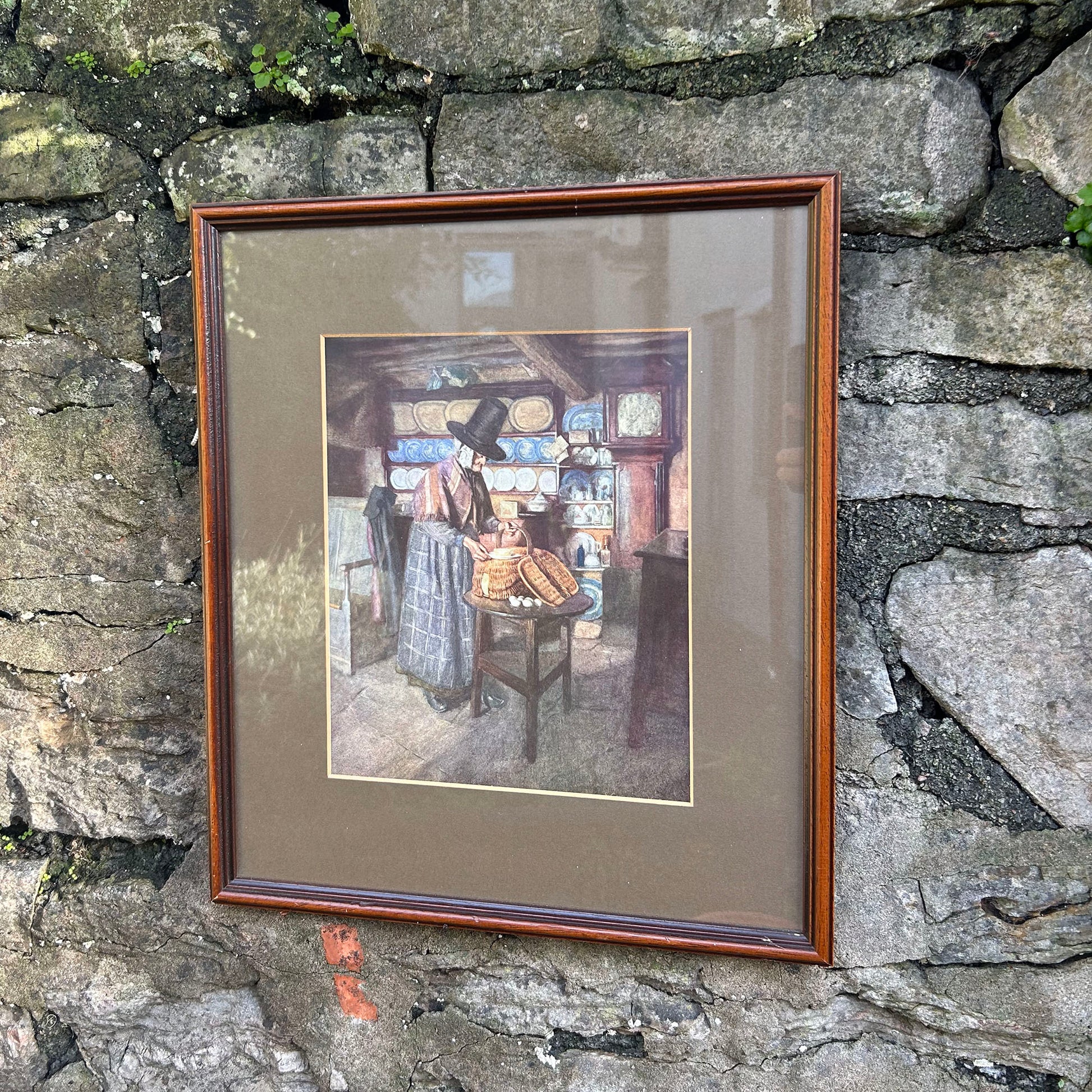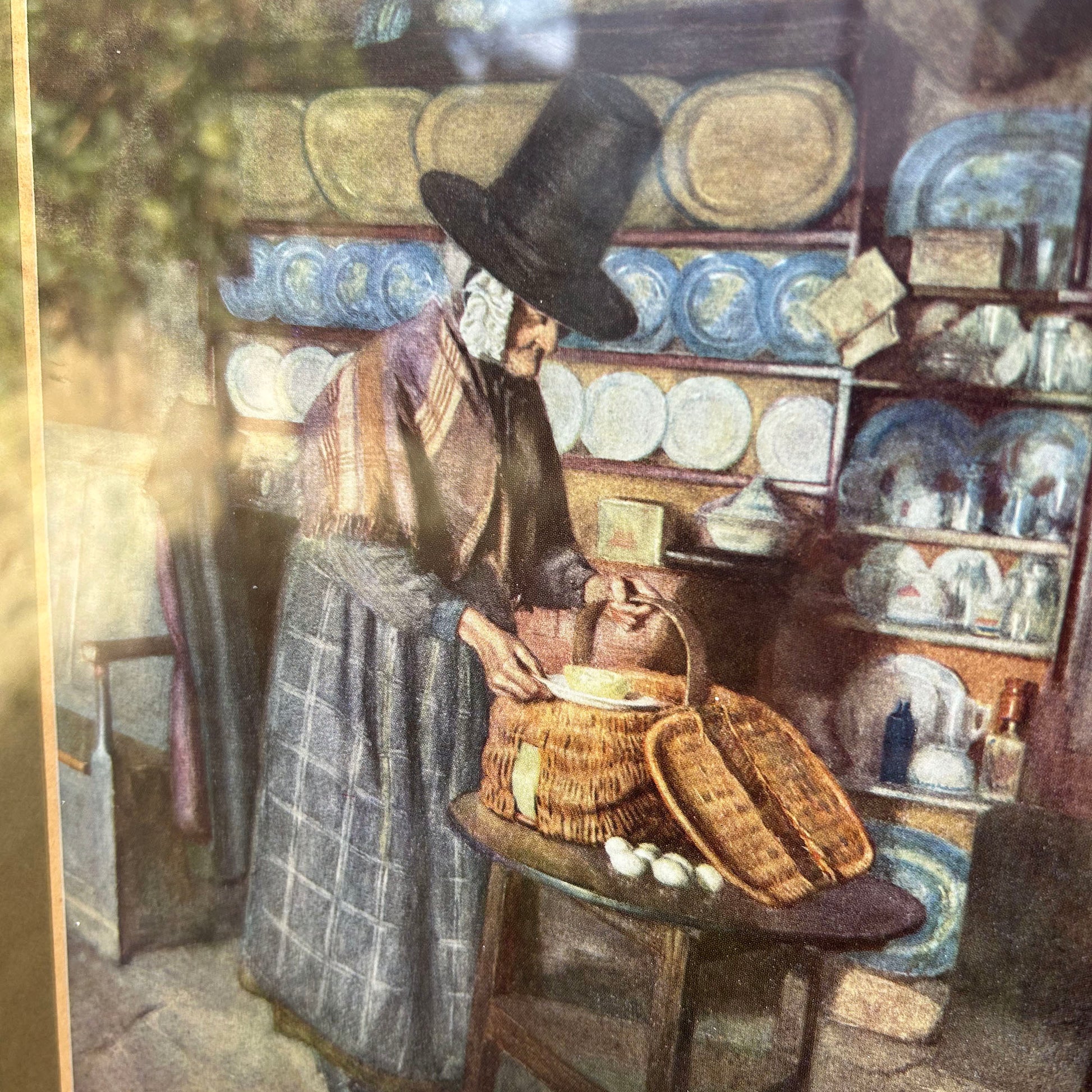 A large and beautiful framed print of a Welsh lady preparing for market by artist Sydney Curnow Vosper (1866-1942).