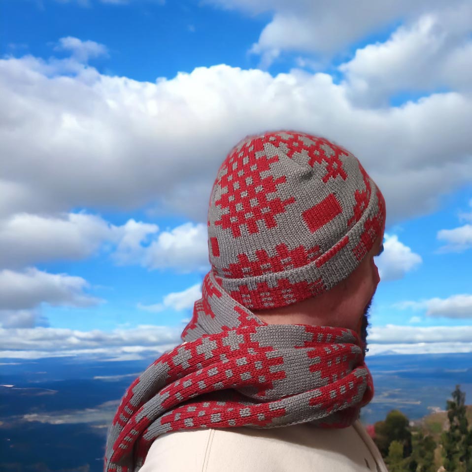 Hat & Scarf Set - Welsh Tapestry Print - Red & Grey